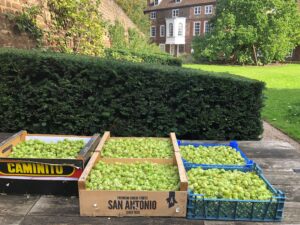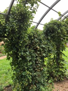 The garden continues to flourish under the care of a devoted volunteer team. In September June Ford Crush, one of the volunteers, harvested 5 boxes of the hops which had climbed the nut walk frame. The 2 plants did really well this year.