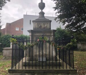 And, to coincide with the Hogarth themed concert at St Nicholas in September, June made swags for the railing around Hogarth’s memorial grave at St Nicholas using flowers and dried plant material entirely from the garden.